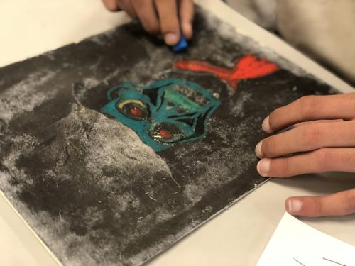 De ochtend begon met tientallen workshops die het creatieve talent van onze leerlingen prikkelden. Professionele kunstenaars, artistieke collega’s en oud-collega’s, familieleden van de leerlingen en studenten inspireerden de jongeren om de wereld van Ensor te ontdekken. Zo maakten sommigen expressieve portretten met mixed media, terwijl anderen in team een 3D-kunstwerk uit karton creëerden. In de workshop ‘Ensors stillevens gedissecteerd’ onderzochten leerlingen de fascinerende details van viskoppen en mariene rariteiten, rechtstreeks geïnspireerd door Ensors moeders curiosawinkel.